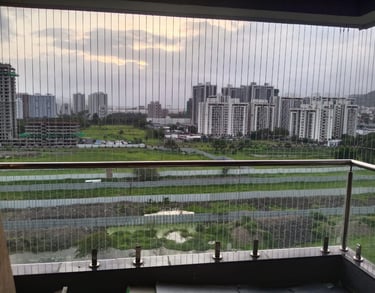 Invisible grills are advanced safety systems made from high-tensile stainless steel cables (SS 304 or SS 316) that are nearly invisible from a distance. Installed across balconies, windows, and open spaces, they offer child and pet safety, prevent intrusions, and maintain an uncluttered, elegant look.