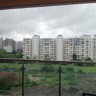 Invisible grills are made from high-tensile stainless steel wires (SS 304 or SS 316) that are installed vertically or horizontally across windows, balconies, and open spaces. Their minimal appearance keeps your view open while ensuring maximum protection.