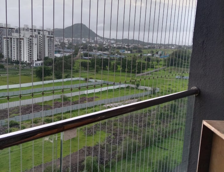 Our high-tensile stainless steel wires (2.5mm & 3mm) are rust-proof, weather-resistant, and durable, making them perfect for the dry summers and monsoons of Marathwada. Whether you want to secure your balcony, windows, terrace, or staircase, our designs blend with your property’s aesthetics.